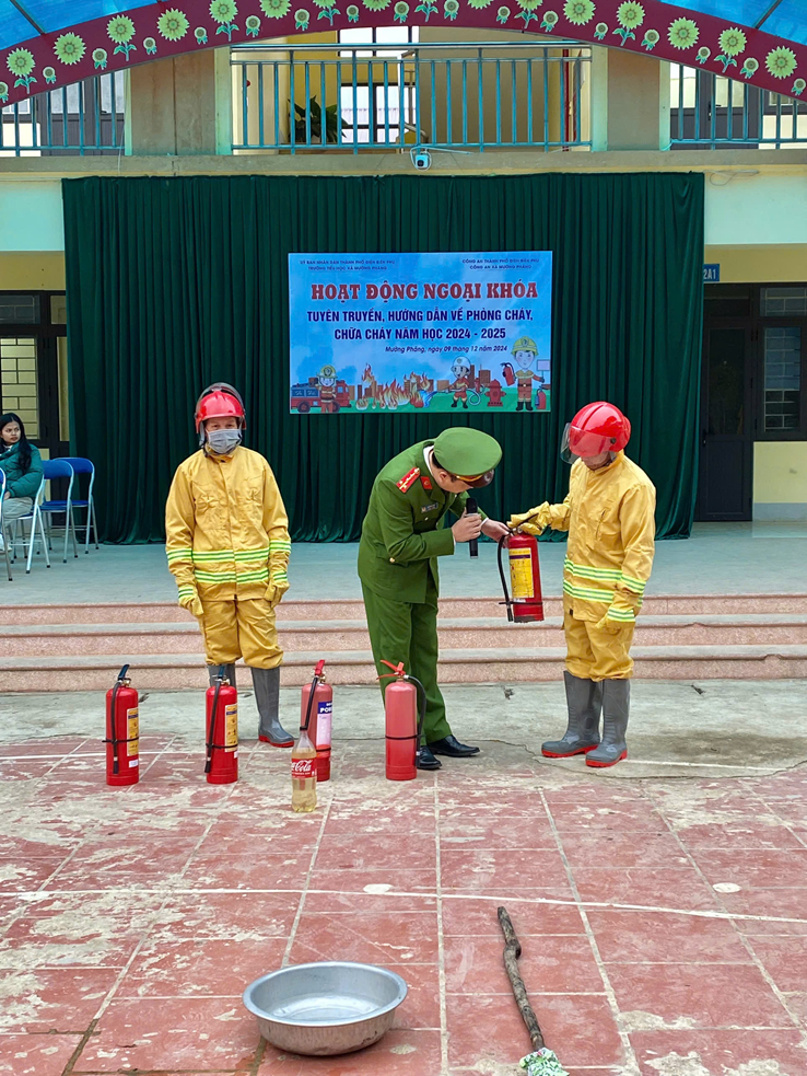 Sáng ngày 9/12/2024, Công an xã Mường Phăng đã phối hợp cùng Trường Tiểu học xã Mường Phăng tổ chức buổi hoạt động ngoại khóa tuyên truyền, hướng dẫn các kiến thức cơ bản về phòng, chống cháy, nổ cho 293 học sinh tại trường.